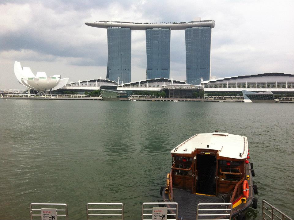 There is a new hotel and casino in Singapore that was not there before. It’s called the Marina Bay Sands and is quite unique looking. It is three towers with a giant boat on top connecting them all. I’m not kidding. It’s on the edge of the city which means you can view the entire city from the balcony on one side and the harbor with all the ships from the other. Naturally we went to the side with the bar (city facing). It’s quite a view at night.